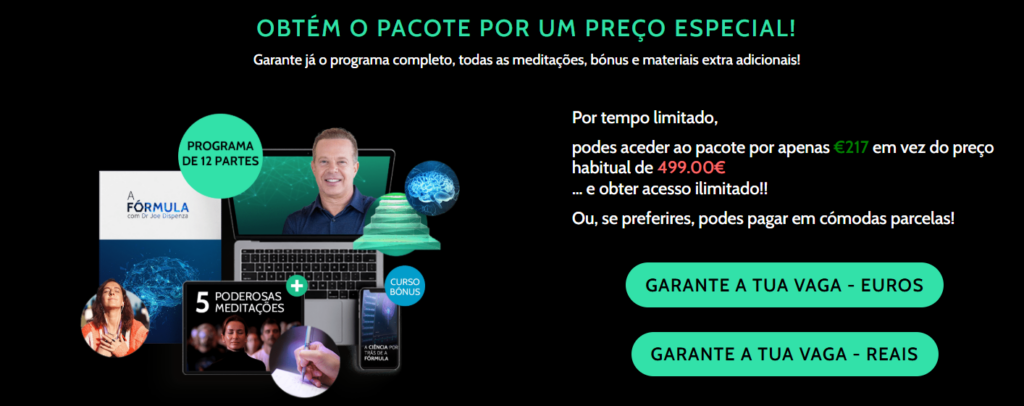 A Fórmula com Dr Joe Dispenza en las Últimas Inscripciones restantes con hasta 80% descuento! Haz tu inscripción hoy con el precio más bajo y garantiza beneficios exclusivos.